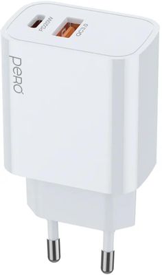 Сетевое зарядное устройство PERO ТС24W, USB-A, USB-C, 20Вт, 3A, белый