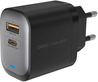 Сетевое зарядное устройство PERO ТС26, USB-A, USB-C, 30Вт, 3A, серый [тс26gr]